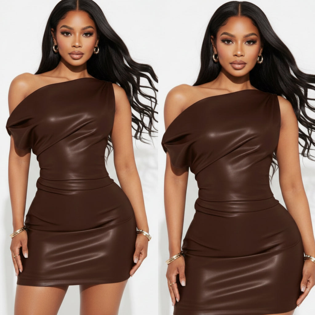 “Black Fire” Faux Leather High Split Maxi Dress