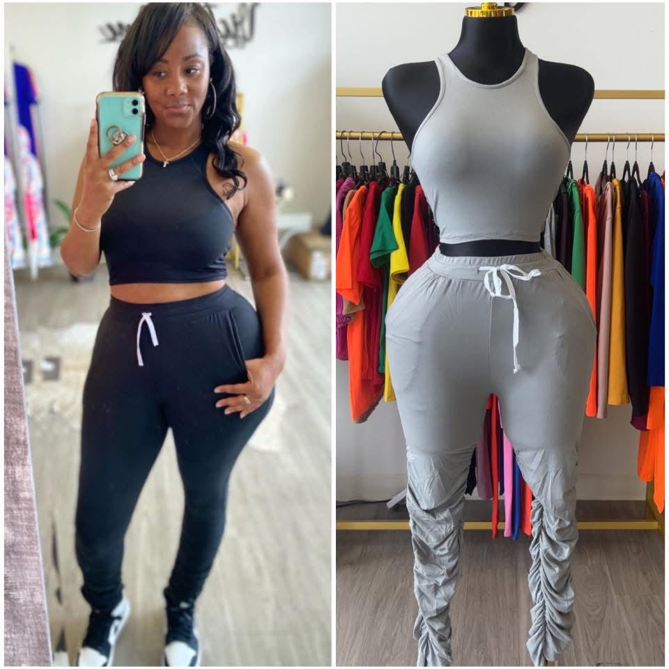“Spade” Ribbed Black 2 Piece Long Sleeve Bodysuit & wide Leg pant set